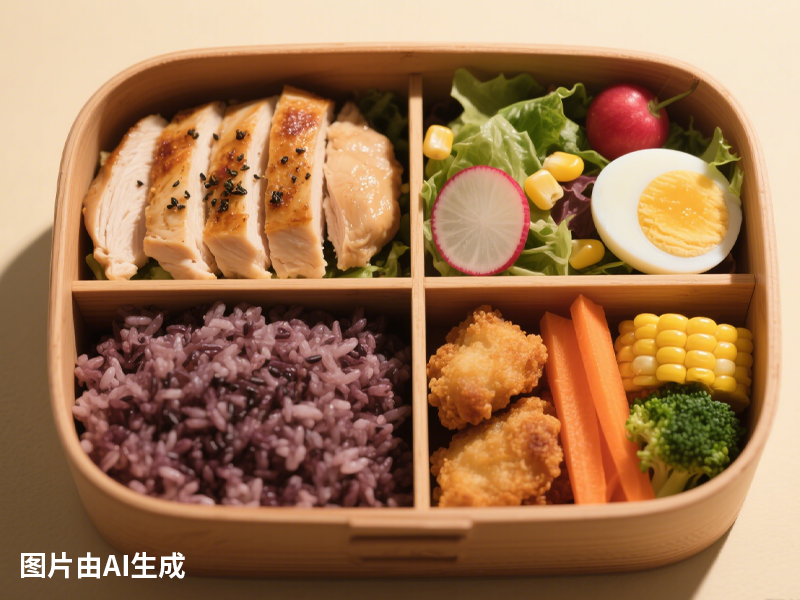 整体的搭配原则要满足主食+蔬菜+蛋白质食物。