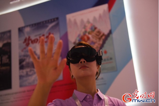 西影无界影院XR展位,工作人员在展示虚拟现实影院。光明网记者 潘迪/摄
